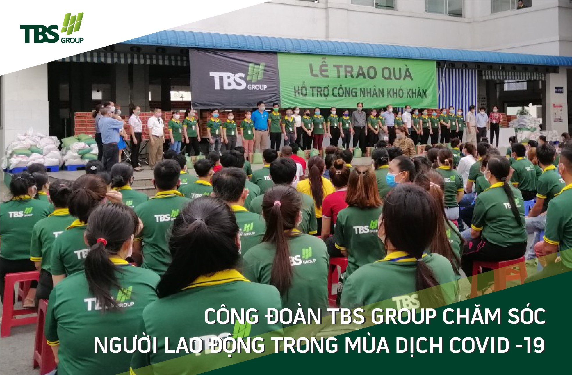Năm 2020 do ảnh hưởng của dịch Covid-19 nên mọi hoạt động kinh doanh sản xuất của TBS Group gặp nhiều khó khăn. Nguyên nhân là do thiếu nguồn nguyên vật liệu, số lượng đơn hàng giảm, dẫn đến nhiều đơn vị trong toàn hệ thống phải tiết giảm lao động, giảm giờ làm. Điều này gây ảnh hưởng rất lớn đến công nhân lao động (CNLĐ) trong toàn hệ thống. Trước tình hình đó, Ban chấp hành (BCH) Công đoàn TBS Group phối hợp cùng bộ phận công đoàn các khu vực nhà máy đã tuyên truyền và kêu gọi CNLĐ tích cực thực hiện các biện pháp phòng ngừa dịch bệnh Covid – 19, vượt qua khó khăn để ổn định sản xuất. Với phương châm “Vì lợi ích của Đoàn viên và người lao động – Vì sự phát triển bền vững của doanh nghiệp”. BCH Công đoàn đã tổ chức triển khai thực hiện nhiều kế hoạch hoạt động chăm sóc người lao động trong đại dịch và đạt được nhiều kết quả, tạo khối đại đoàn kết, thống nhất, đảm bảo cho sự ổn định của doanh nghiệp cũng như việc làm, thu nhập của người lao động.