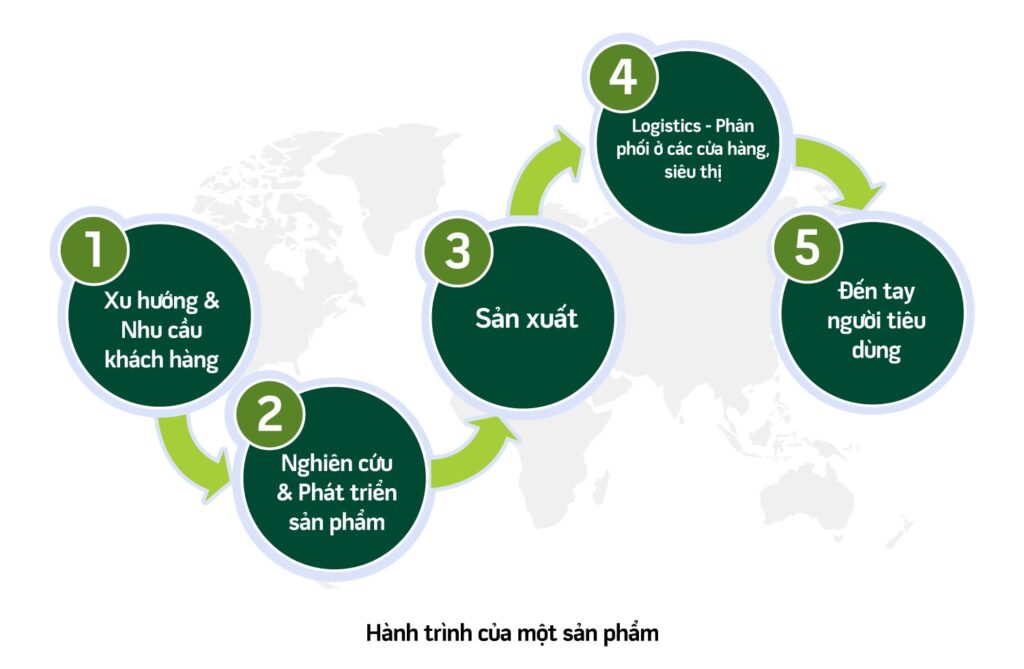 Bất kỳ sản phẩm nào cũng sẽ có một quy trình từ nguyên liệu đầu vào cho đến khi được cấu thành hoàn chỉnh. Nếu xem xét về hành trình của một sản phẩm từ khi sản phẩm được sinh ra cho đến khi kết thúc, loại bỏ, có thể thấy quy trình dịch chuyển này có tính chu kỳ lặp lại và có nhiều yếu tố tác động dẫn đến thay đổi ở chu kỳ tiếp theo. Hành trình của một sản phẩm có thể được tóm tắt theo các bước: