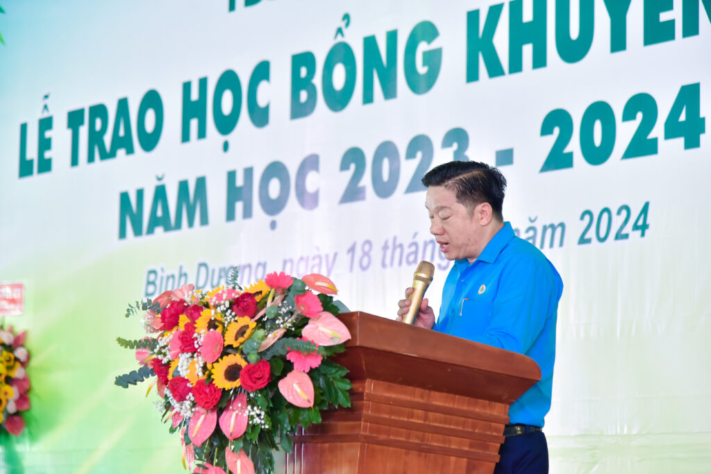 Đại diện Liên đoàn tỉnh Bình Dương – ông Đào Trần Đông – UV BTV, Chủ nhiệm UB Kiểm tra LĐLĐ Bình Dương đánh giá cao ý nghĩa thiết thực của Quỹ Khuyến học TBS Group