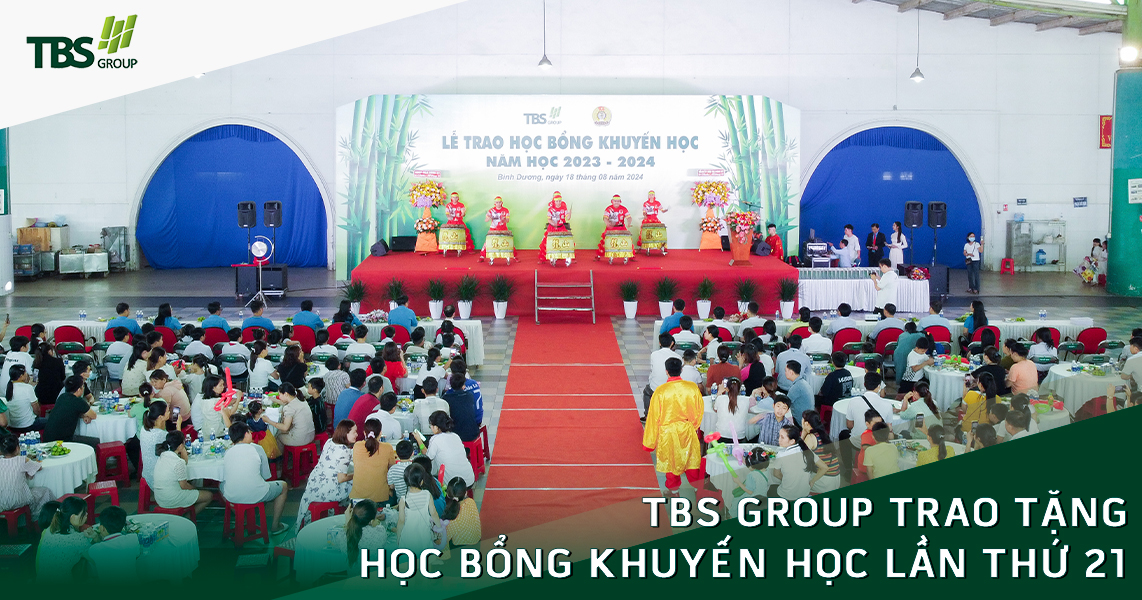 Sáng ngày 18/8/2024, Lễ trao học bổng Khuyến học lần thứ 21 của Tập đoàn TBS Group đã diễn ra tại 3 Tổ hợp/NM gồm Khu vực Miền Đông, Mỹ Phong (Trà Vinh) và Kiên Giang cho hơn 1.206 học sinh, sinh viên là con em của cán bộ công nhân viên.