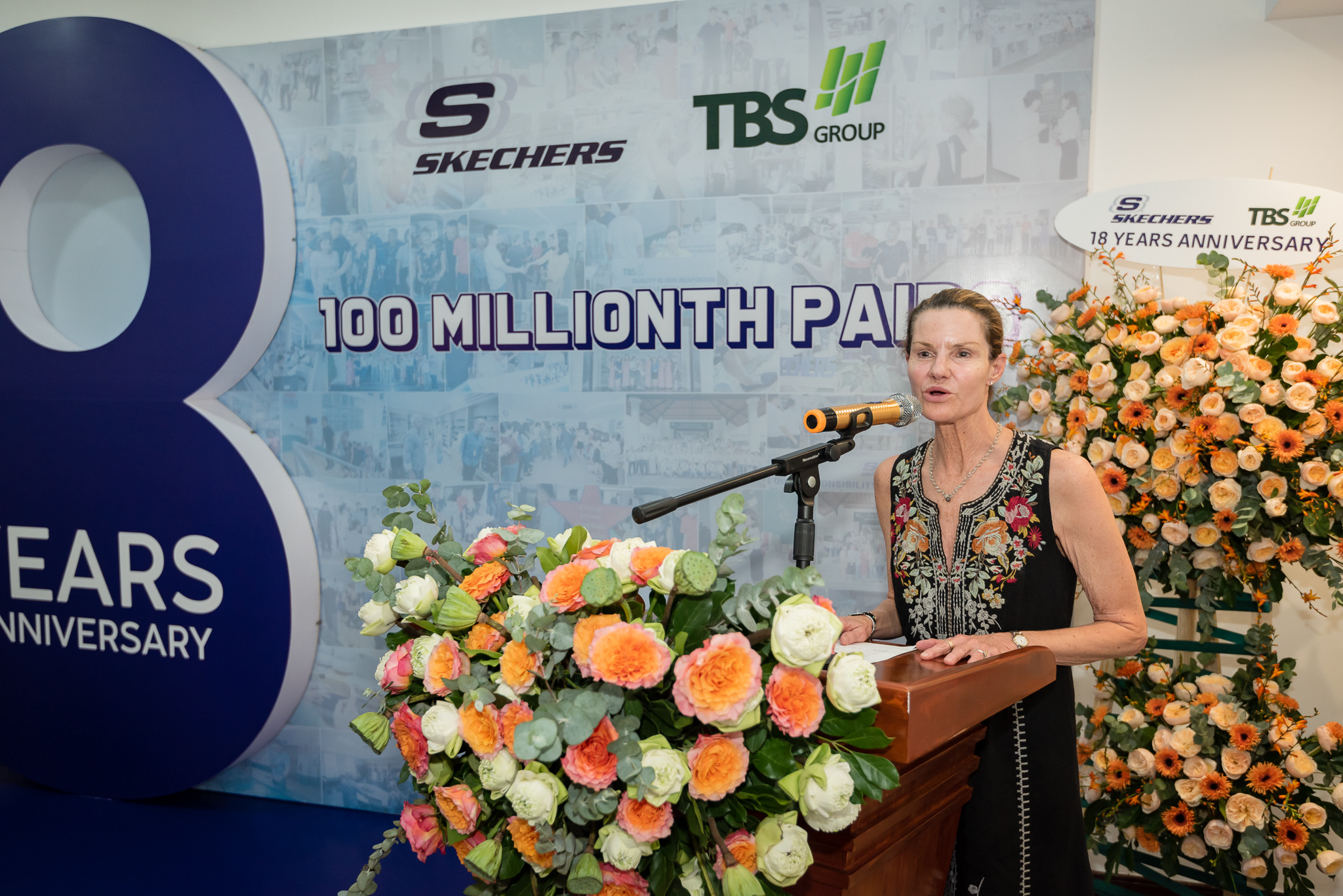 Speaking at the event, Ms. Kathy Kartalis shared: “Today, we celebrate 18 years of the partnership between Skechers Vietnam and TBS, along with the milestone of 100 million pairs of shoes produced together. My sincere thanks go to the Skechers Vietnam team and the TBS team for contributing to this tremendous success. TBS was our very first manufacturing partner when Skechers began doing business in Vietnam 18 years ago. We now have a much larger presence here, but we owe a great deal of recognition to TBS for paving the way and teaching us how to operate in Vietnam.”