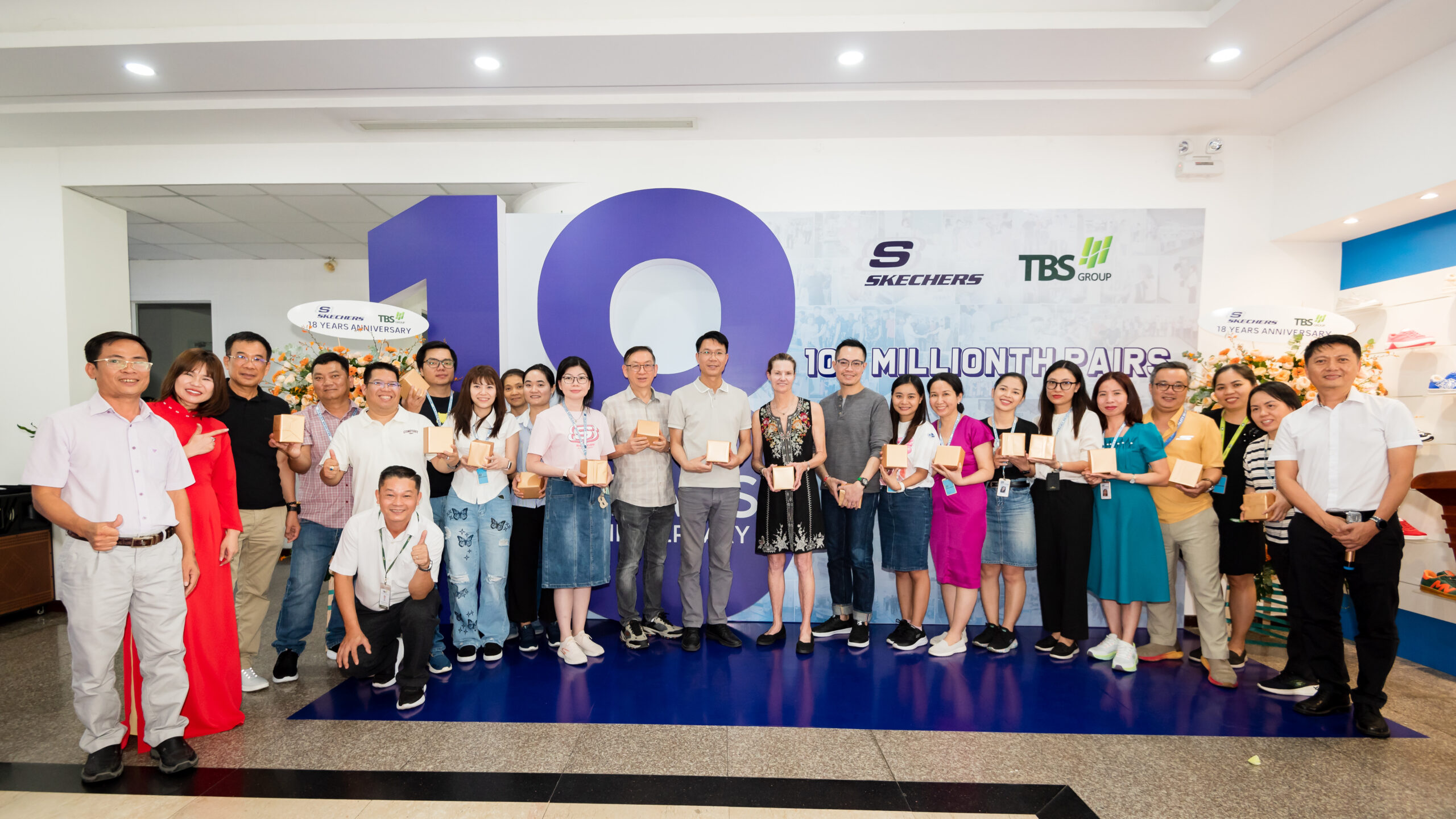 On May 9, 2024, Ms. Kathy Kartalis, Senior Vice President of Global Product for Skechers, visited and worked with TBS Group and the Skechers Vietnam team. The event marked the 18th anniversary of the strong partnership between TBS Group and Skechers, and the production of the 100 millionth shoe. This milestone is not only a testament to the robust relationship between the two companies but also a demonstration of TBS Group’s impressive journey in the fashion industry and its solid position on the international stage.