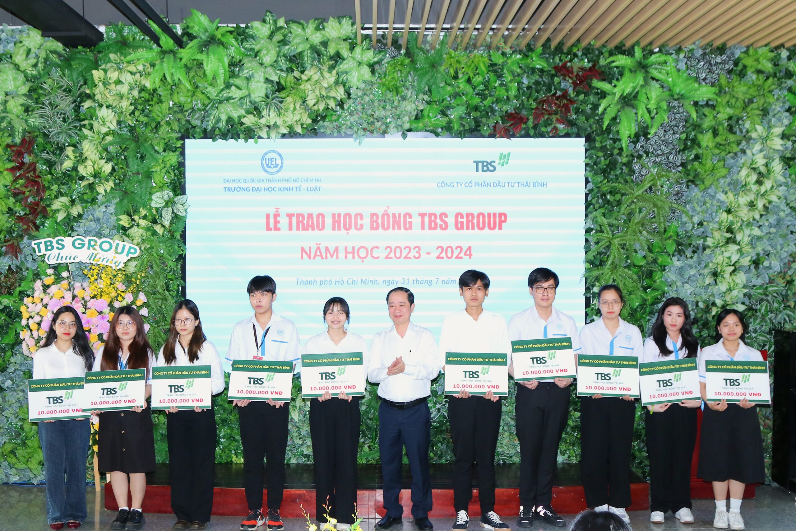 On the morning of July 31, 2024, the TBS Group scholarship award ceremony was held at the UEL Startup & Language Space, University of Economics and Law (UEL), in Linh Xuan Ward, Thu Duc, Ho Chi Minh City.